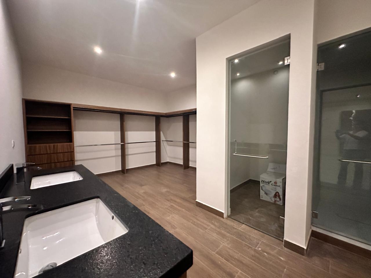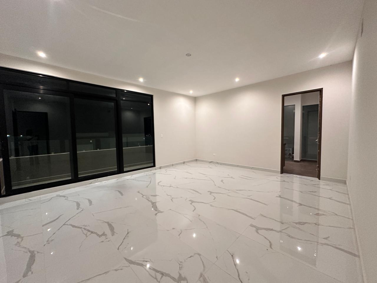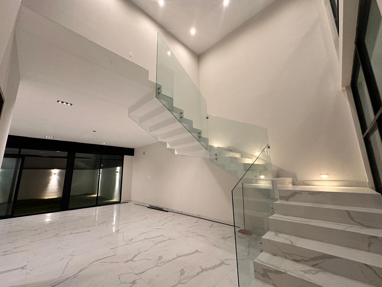3 Plantas, cochera para 4 autos, recibidor doble altura, sala/comedor, cocina integral con family room, lavandería, cuarto de servicio, recamara y/o estudio en PB, estancia, 3 recamaras con su baño-vestidor walk-in-closet. Acabados de lujo!! Incluye: cocina integral, carpintería en vestidores, caceles de cristal templado en baños y escalera. Fraccionamiento privado con vigilancia 24/7!! Amenidades: Casa club, alberca, multiples áreas de asador, ludoteca, gimnasio, canchas de padel, entre otros!!
